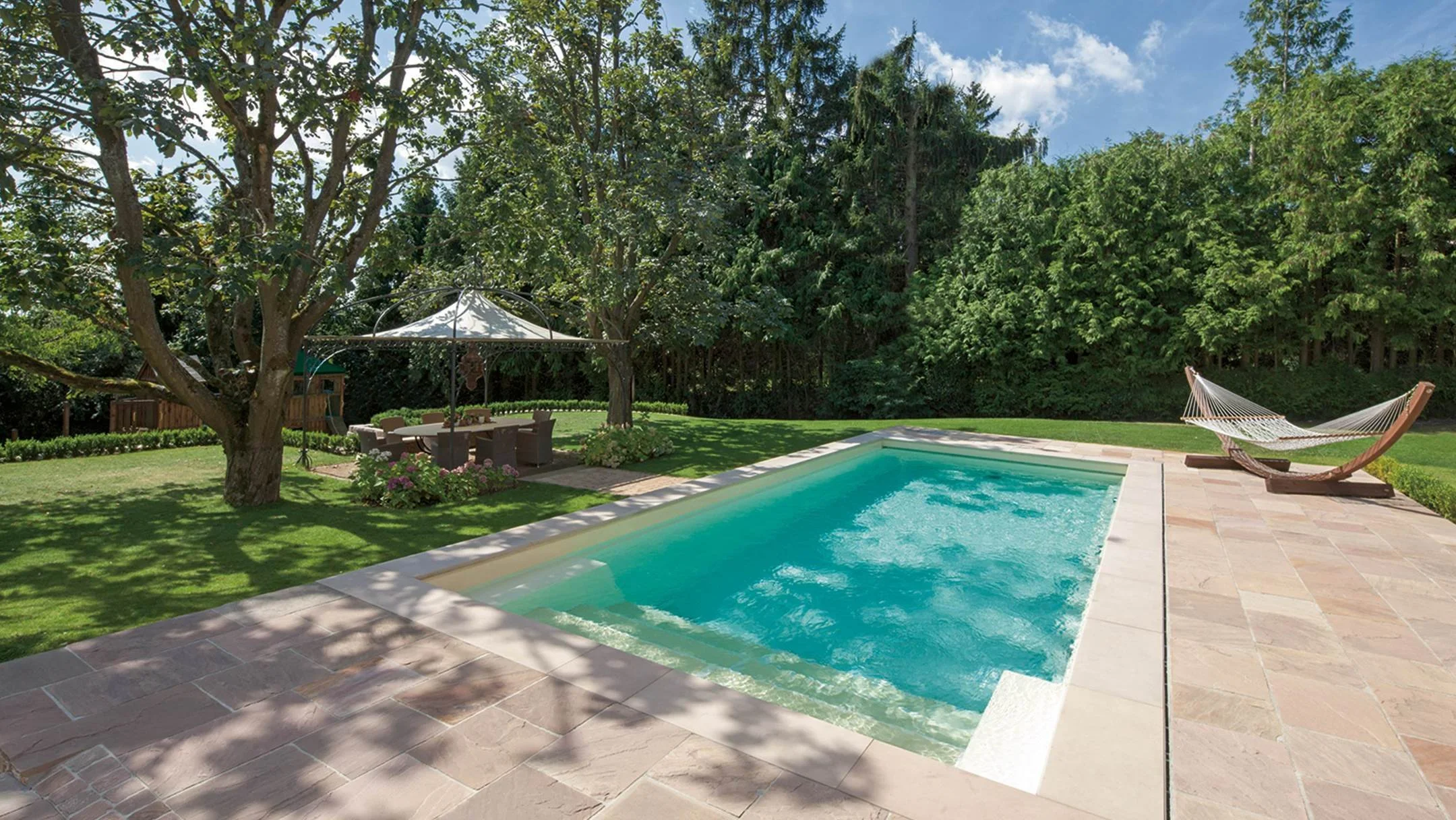 • Breite Pooltreppe über die gesamte Beckenbreite