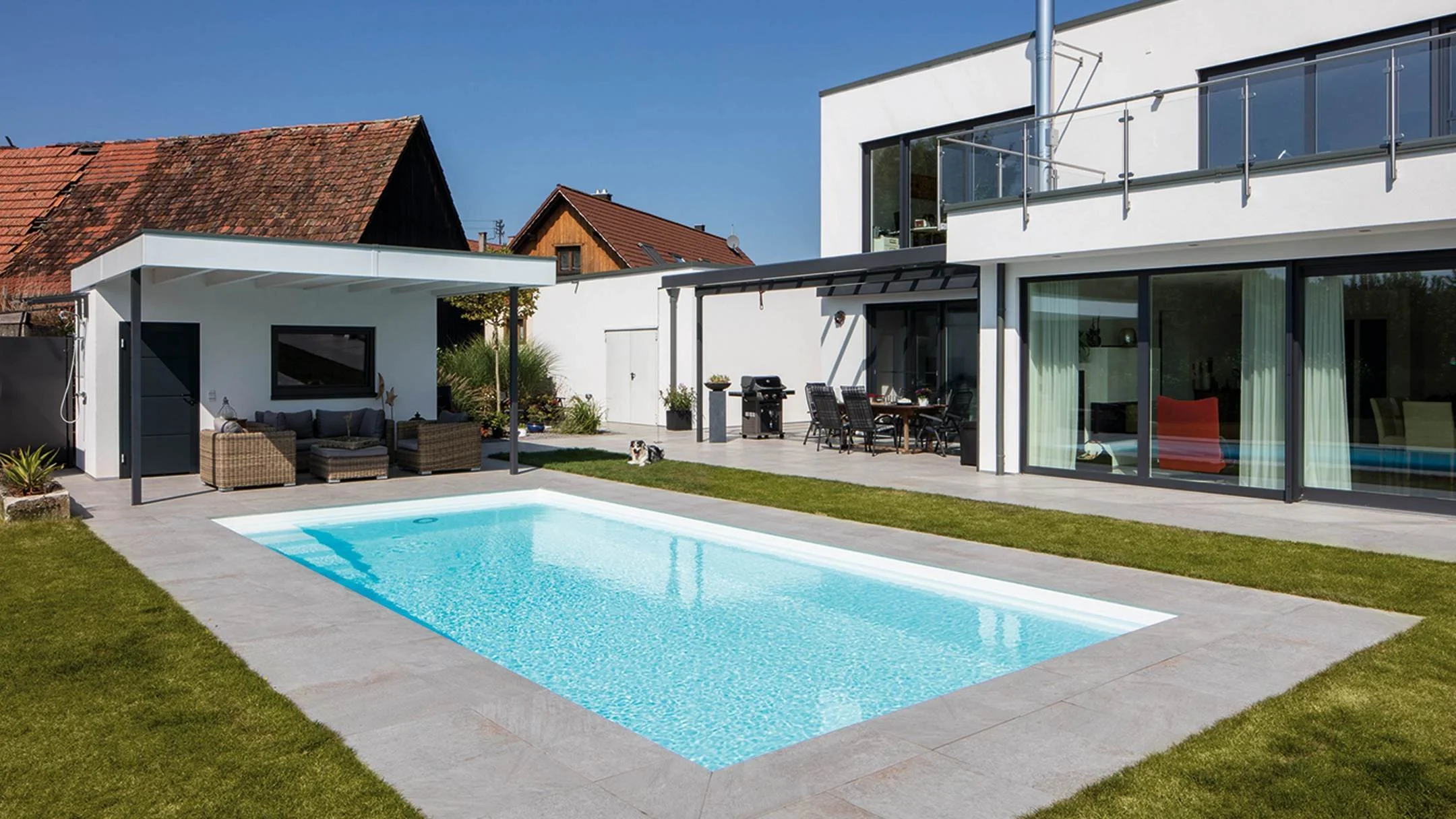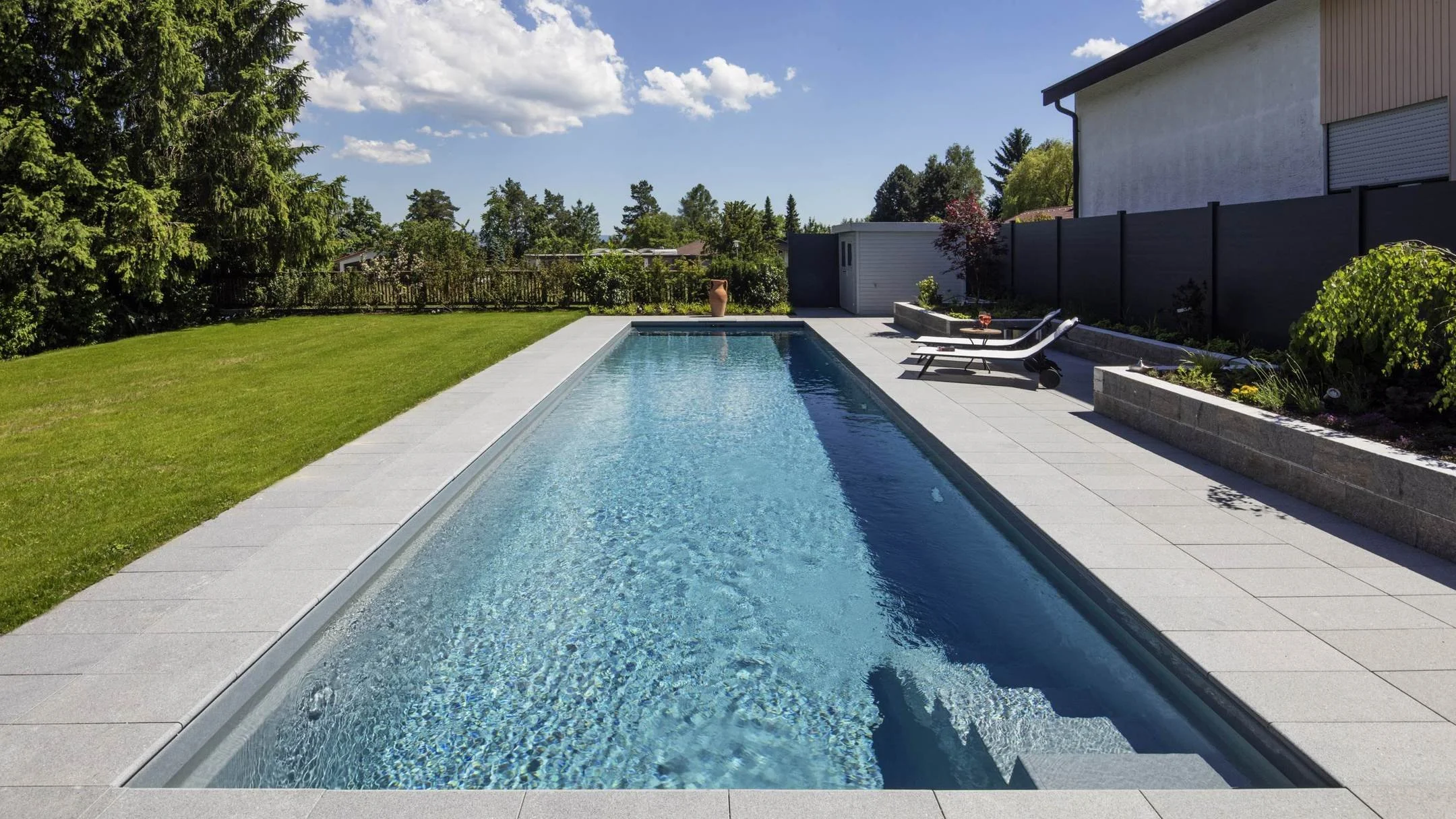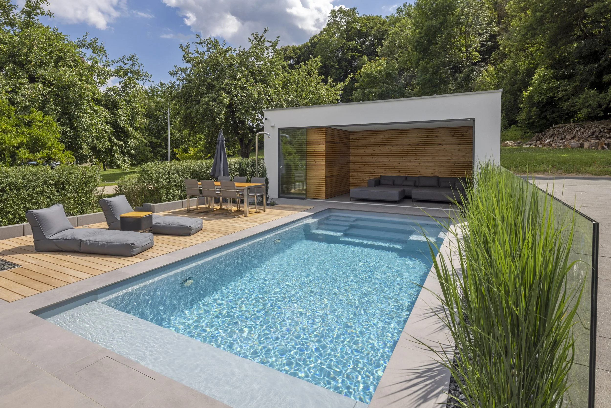 Perfekte Integration: Ideal für Gartenkonzepte, bei denen der Pool harmonisch mit natürlichen Materialien und moderner Architektur verschmelzen soll.