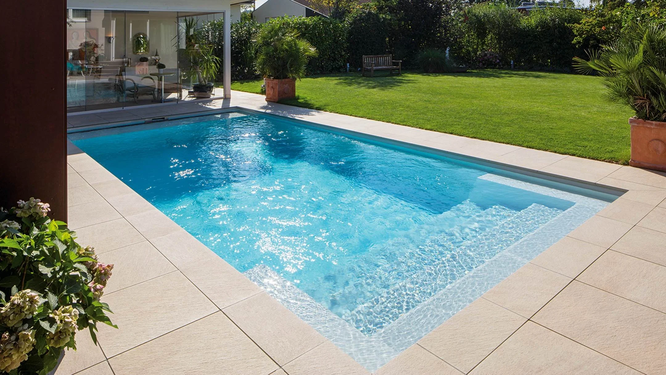 Riviera PoolGeradlinige Pooltreppe für maximale Schwimmlänge.